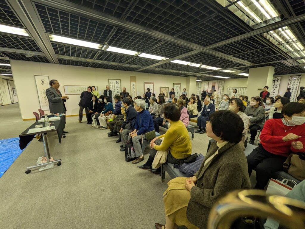 まず、作品について作家の立場からの方法論が話され、その共通の特徴が『空間のとりかた』それは文字構成の空間であり、制作紙面の中での空間とういうことである。書における貴重でありかつ最も大事なポイントを解説していただいた。