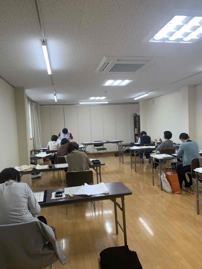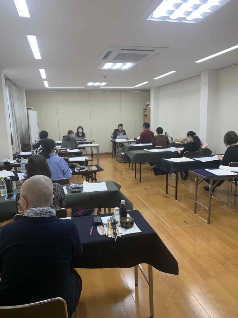 水明書道会の師範・準師範対策講座、今回の受講者は漢字部門12名、かな部門8名でした。