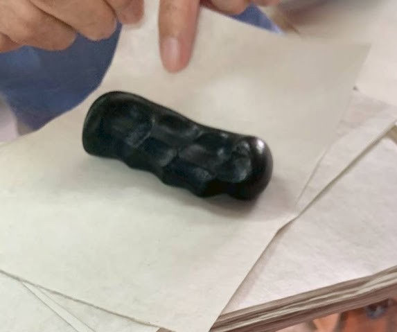 もう一つのグループは、実際に職人さんが墨を練るところを見学し、「握り墨」を作らせていただきました。