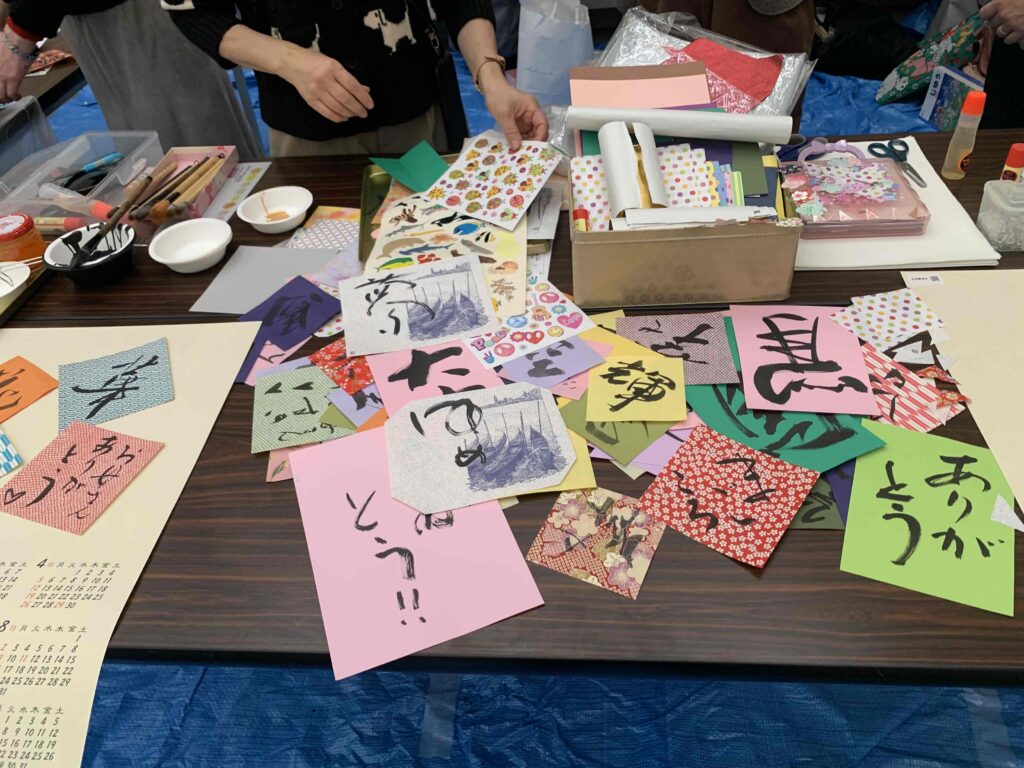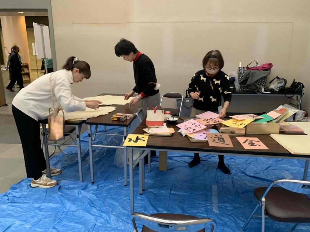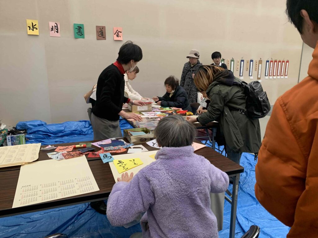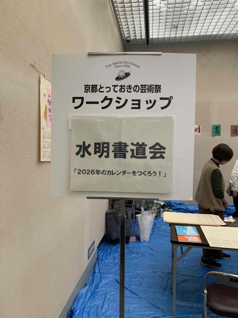 『京都とっておきの芸術祭』(障害のある方々の芸術を応援する芸術祭)では、水明書道会が毎年会場でワークショップをして協力させていただいております。